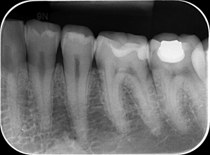 RADIOGRAFIA RETROALVEOLARA – cunoscută și sub numele de radiografie periapicală, este o radiografie dentară intraorală ce oferă o imagine detaliată a unui singur dinte sau a unui grup mic de dinți (maxim trei) și a țesuturilor din jurul lor, inclusiv a rădăcinilor, osului și gingiilor. Aceasta este utilizată pentru a detecta carii, leziuni periapicale (zone de infecție la vârful rădăcinii), abcese, tratamente de canal incorecte și probleme ale osului sau gingiilor.