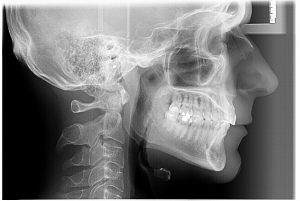TELERADIOGRAFIE DE PROFIL – este un tip de radiografie craniană, realizată de la distanță, care oferă o imagine panoramică a feței, maxilarului, dinților și craniului dintr-o singură perspectivă laterală sau frontala. Această imagine permite evaluarea relațiilor dintre structurile osoase și dentare, a creșterii faciale și a fizionomiei, fiind un instrument esențial în ortodonție și alte tratamente dentare.